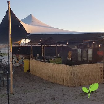 Ook zijn deze gepelde rietmatten ideaal om een festival of evenement sfeervol mee aan te kleden. Ze zijn namelijk schoner en lichter dan ongepelde rietmatten en eenvoudig (meermaals) te bevestigen met tie-wraps of ijzerdraadjes.